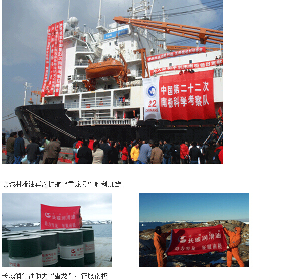 值得驕傲的是,此次南極科考活動中,長城牌全合成四沖程摩托車油、全合成CF-4柴油發(fā)動機油,以及低溫液壓油、全合成齒輪油、全有機型發(fā)動機冷卻液等產(chǎn)品在南極中山站的陸地設(shè)備上得到全面應(yīng)用,經(jīng)受住了極地的酷寒考驗,充分顯示了長城潤滑油的卓越品質(zhì)。